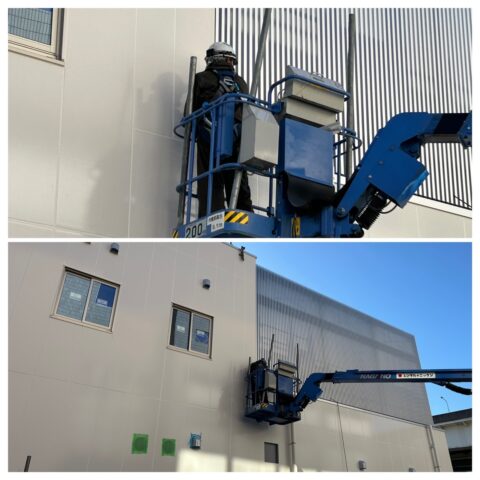 写真は高所作業車を使用してる作業状況です。